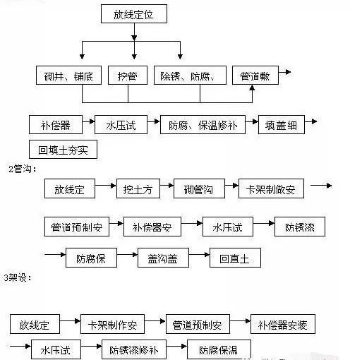 1.安装无地沟管道,必须在沟底找平夯实,沿管线铺设位置无杂物,沟宽及沟底标高尺寸复核无误。