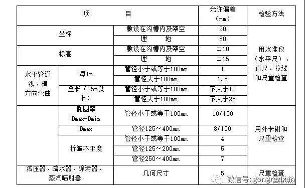 室外供热管道安装的允许偏差和检验方法见下表。