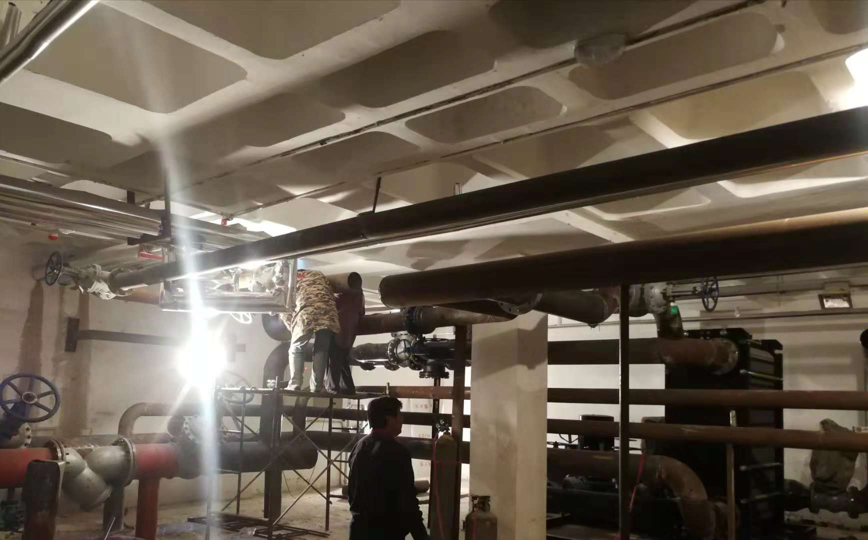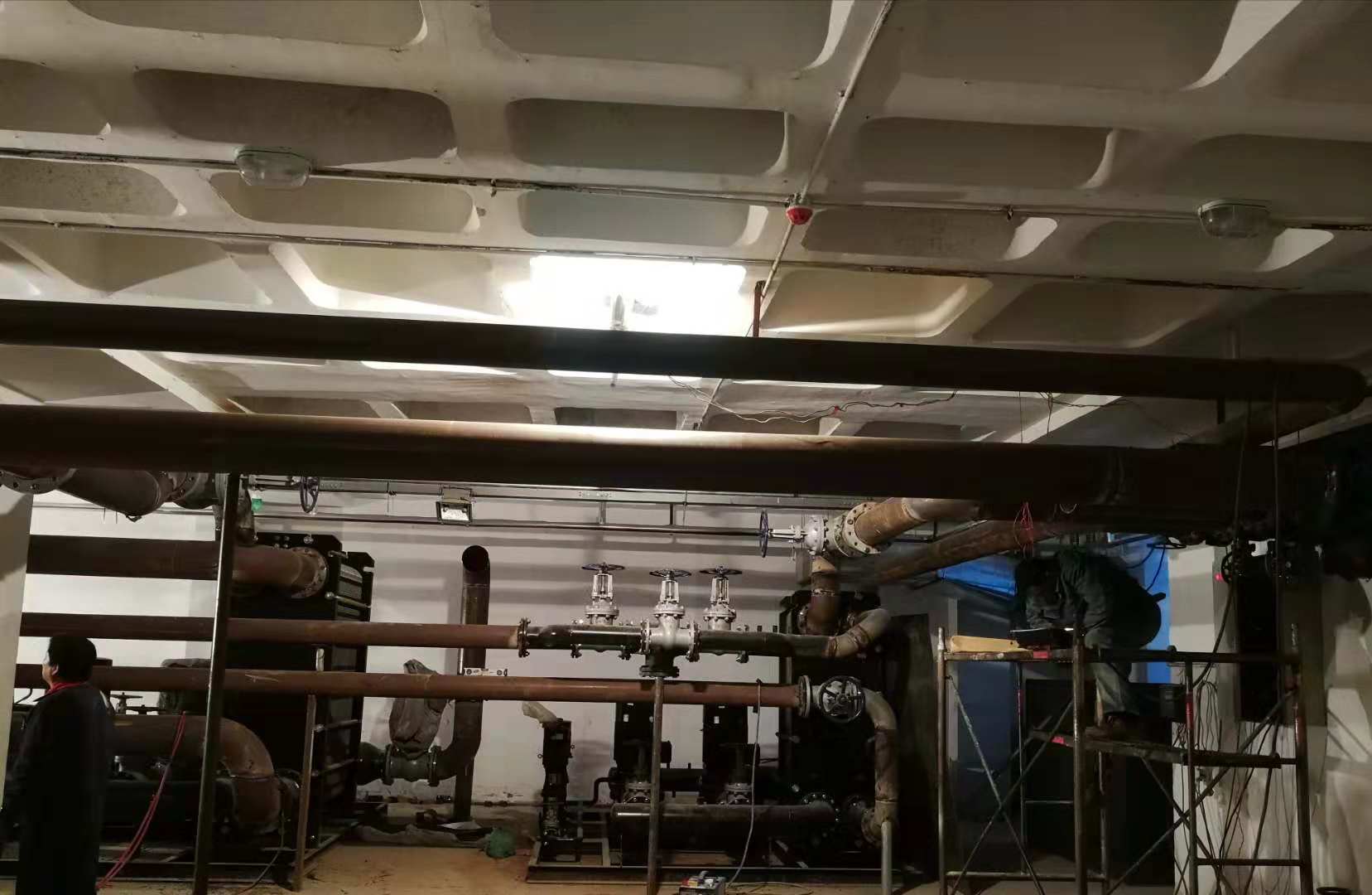 11月8日齐信机电为邹平黛溪湾小区提供的高低区智能板式换热机组发货到现场,同时派出专业施工人员到现场进行设备和管道安装施工。