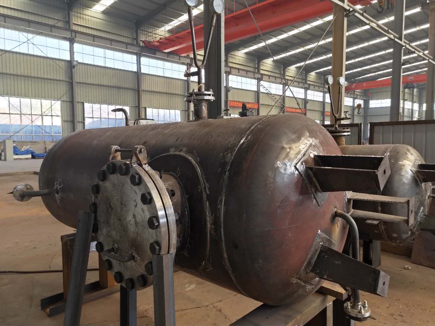 齐信机电给山东福源设备安装有限公司制作的天然气废气回收罐及进气缓冲罐设备生产即将进入尾声,现在正在进行水压试验阶段,在生产过程中我们与甲方密切沟通,以最合理的技术方案和最快的生产日期达到客户的使用需求。