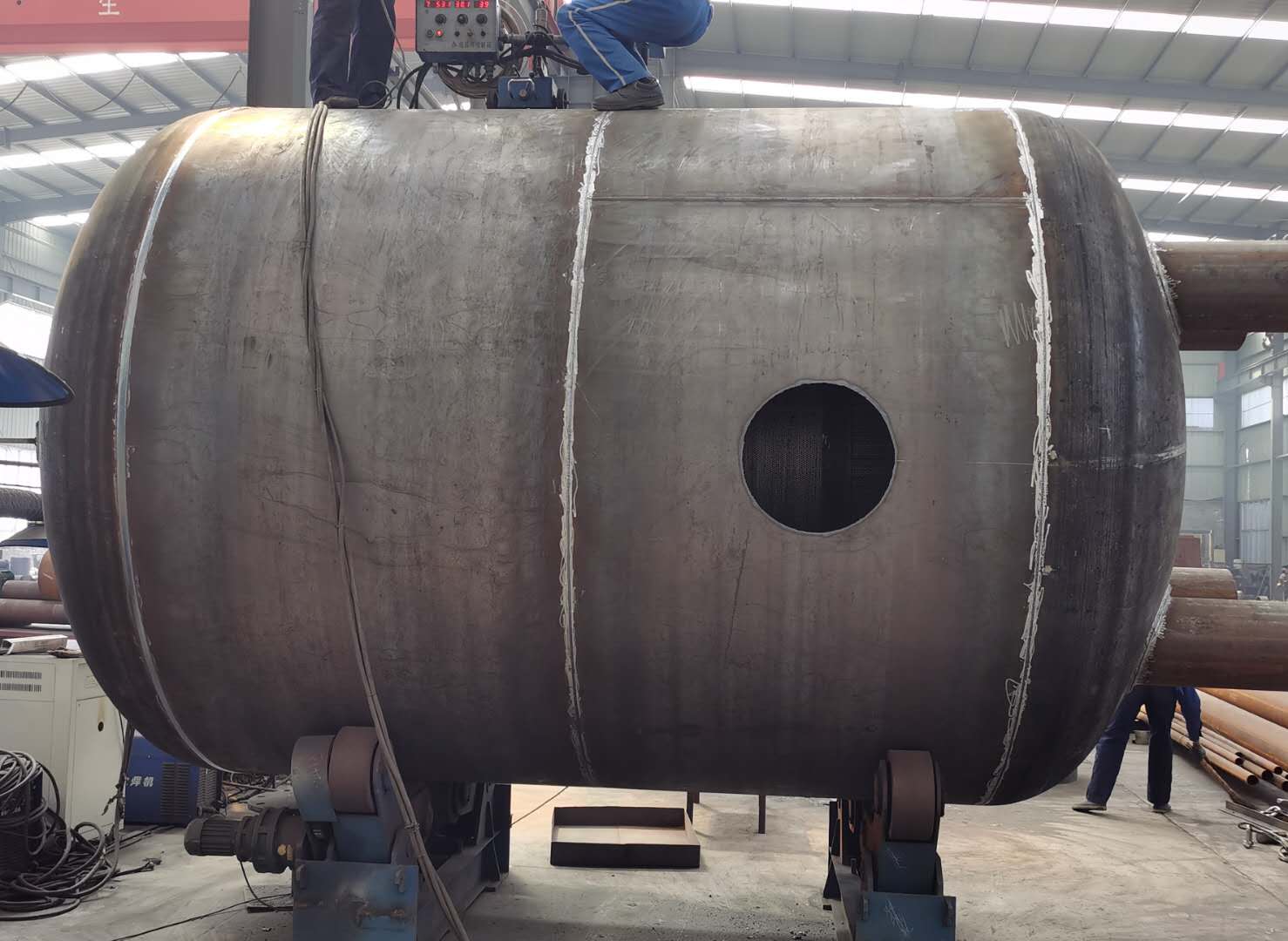 承载希望,超越梦想。齐信机电承接的换热站首站配套用大型除污器生产项目进行的如火如荼。该除污器直径2.8米,进出水管径1.2米,单台处理水量8000m³/小时,过滤精度4mm。