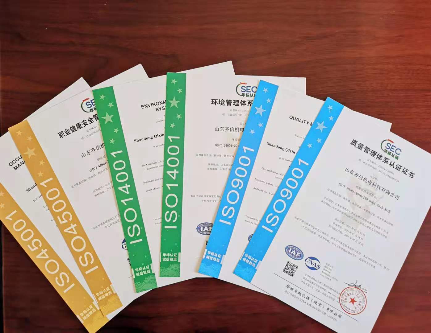 近日,华标卓越认证(北京)有限公司的两位专家经过三天严苛审核,齐信公司每一项指标均满足该体系认证各项标准,顺利通过质量管理体系、环境管理体系和职业健康安全管理体系三项管理体系的认证,并于7月27日下发三项体系认证证书。